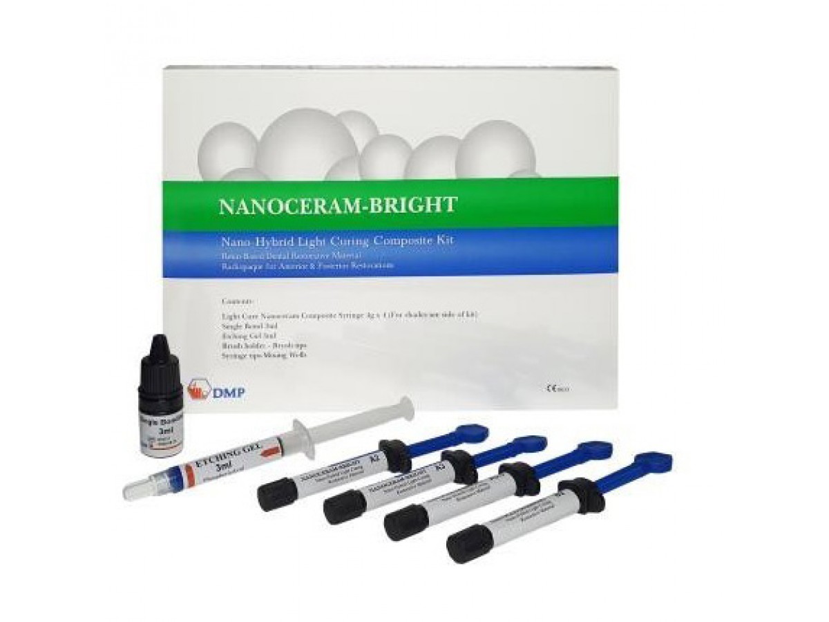 Nanoceram-Bright - это Нано-Гибридный композитный, реставрационный материал с уникальной технологией нанонаполнения, которая обеспечивает отличную эстетику и физические свойства. Эта технология позволяет интегрировать наночастицы размером 20nm в высоко рефлекторную композитную матрицу. Производитель: DMP Dental Industry S.A., Греция.