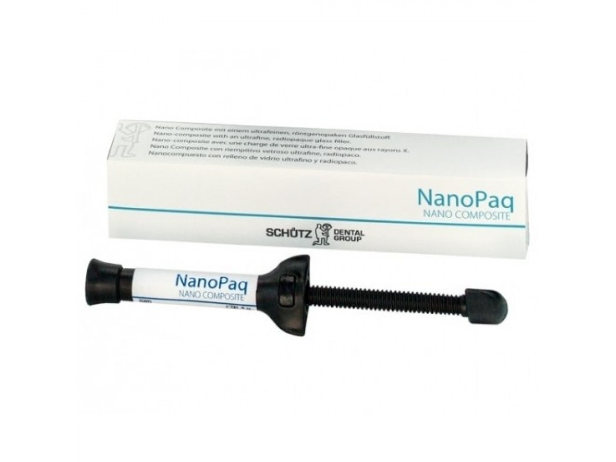 NanoPaq создан для эстетичных реставраций. Nanopaq НЕ обесцвечивается. Нанотехнологии препятствуют проникновению красителей в материал – была проверена устойчивость к пигментам кофе и свеклы. Наноструктурированная поверхность сопротивляется истиранию – тот же эффект используется в оптике для линз. Производитель: Schütz Dental Group, Германия.
