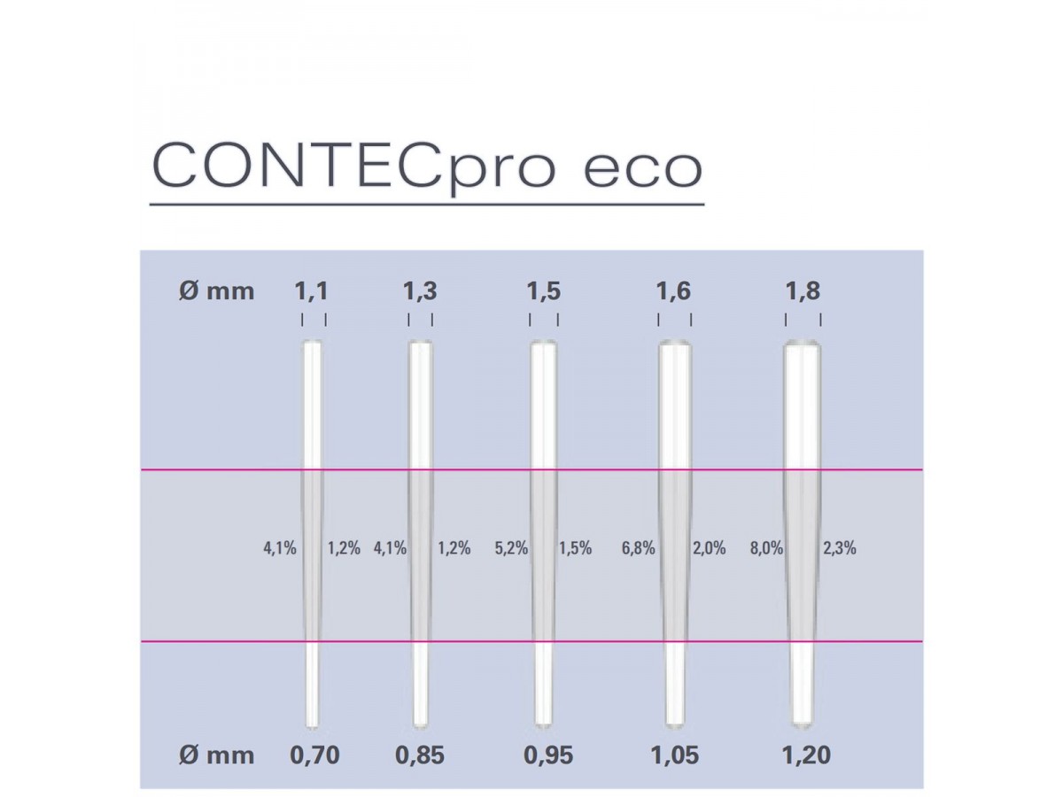 CONTECpro eco – транспарентные стекловолоконные штифты конической формы, без насечек. Цветовая кодировка соответствует ISO.