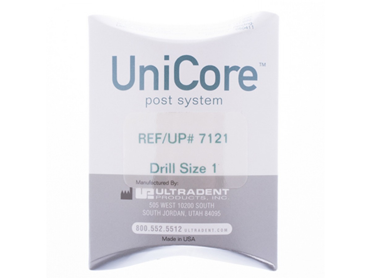 Ультратонкая дриль UniCore с цветовой маркировкой по размеру упрощает использование инструмента в клинических условиях. Производитель: Ultradent, США.