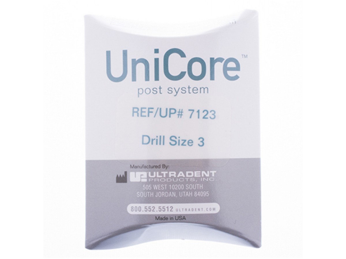 Ультратонкая дриль UniCore с цветовой маркировкой по размеру упрощает использование инструмента в клинических условиях. Производитель: Ultradent, США.