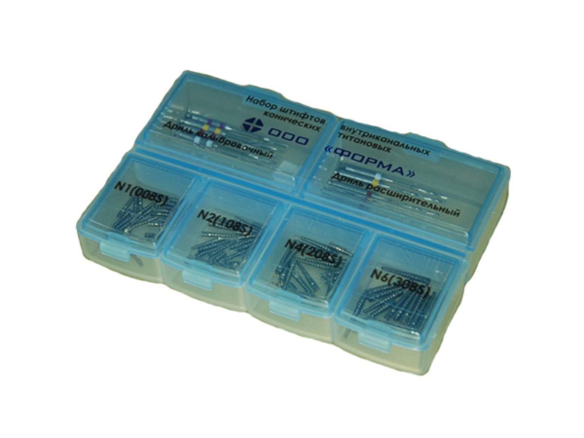 Набор титановых штифтов (номер 1) (80 шт. + 8 инструментов). Производитель: Форма, Россия.