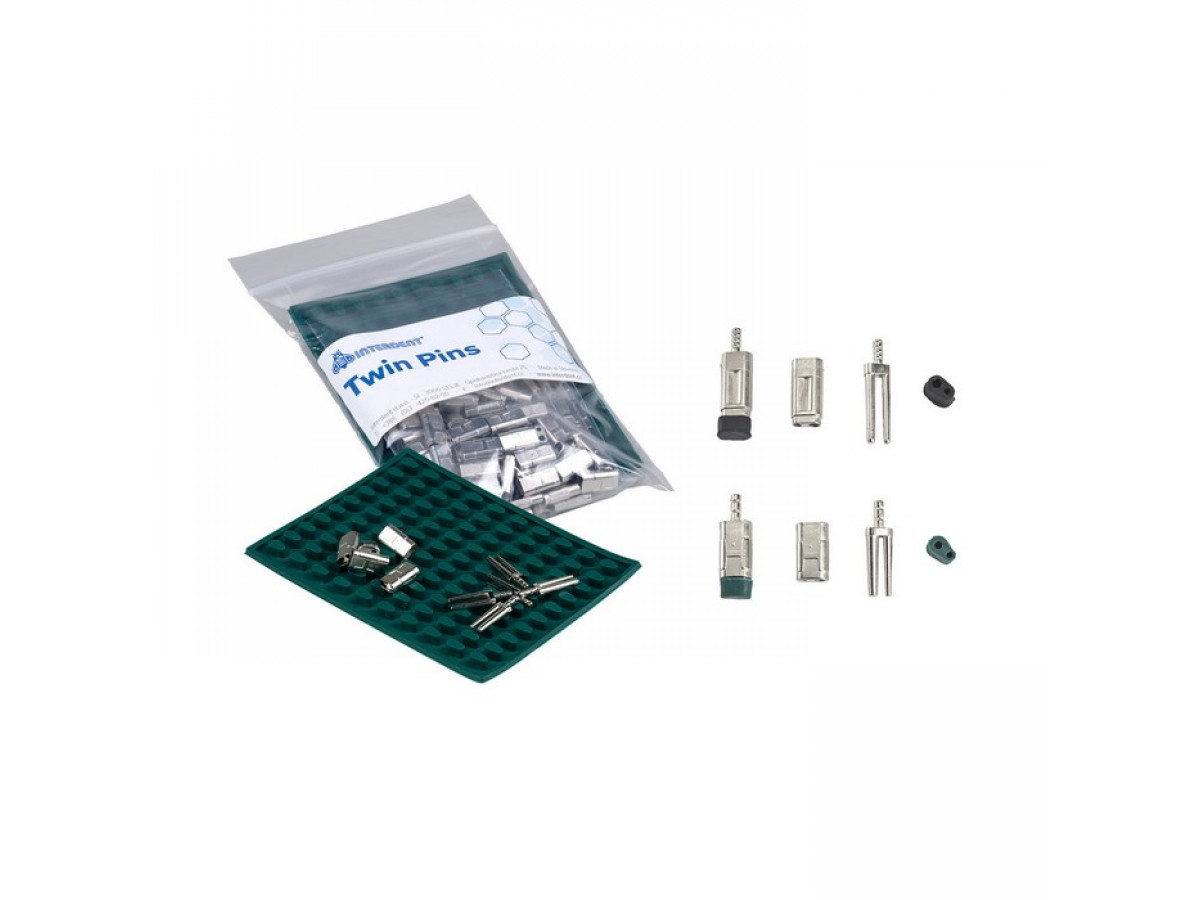 Штифты Тwin-Pin размер S обеспечивают хорошую фиксацию при подготовке рабочей модели, особенно на тех участках модели, где мало места. Втулка обеспечивает стабильность установленного штифта при многоразовом снятии. Подходят для применения во фрезерной технике. Резиночка служит в качестве защиты пина при изготовлении цоколя. Производитель: Interdent d.o.o., Словения.