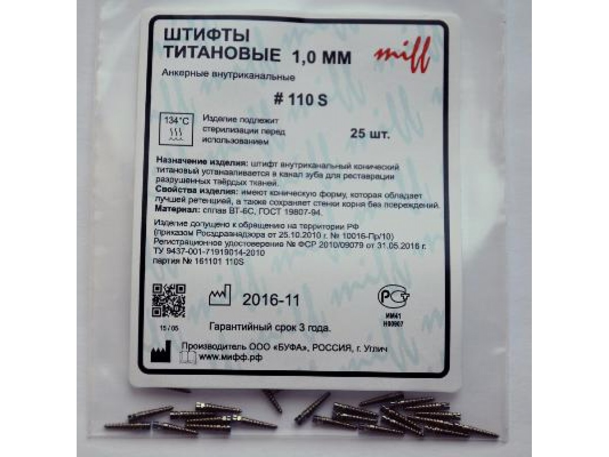 - Штифты титановые, размер 110S — 25 шт. в упаковке.