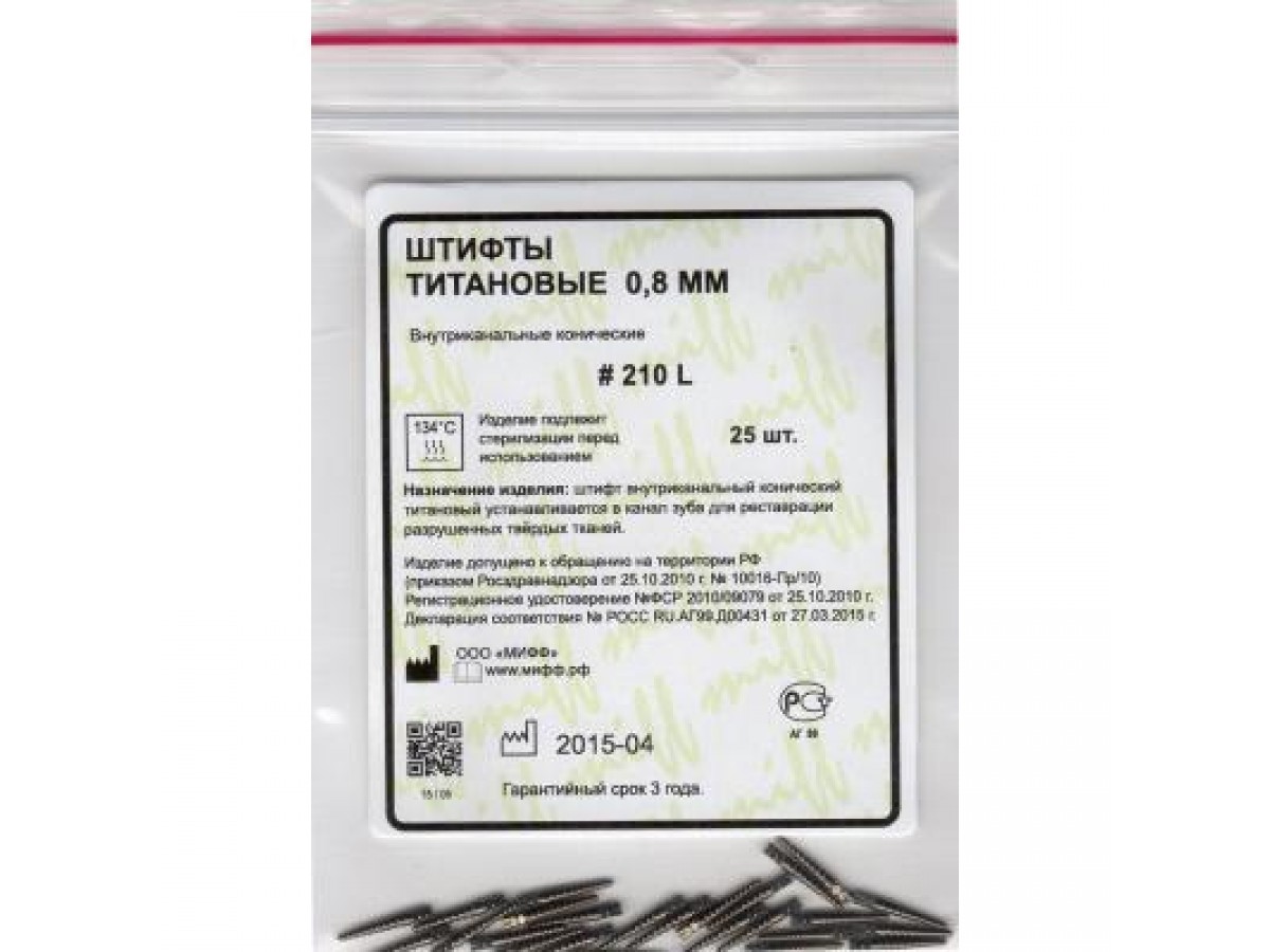 - Штифты титановые, размер 210L — 25 шт. в упаковке.