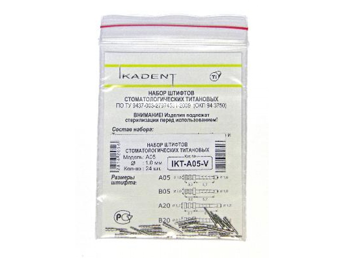 - Набор титановых эндоканальных штифтов IKT-A05-V — 24 шт. в упаковке.
