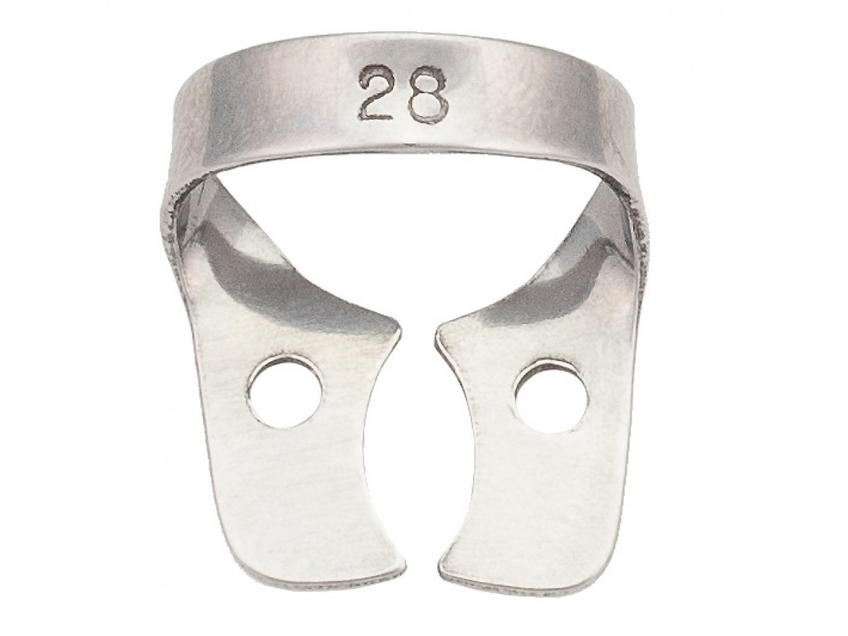 Кламп № 28 для верхних и нижних моляров с плоскими щечками. Без крыльев с широким обзором. Производитель: Medenta, Пакистан.
