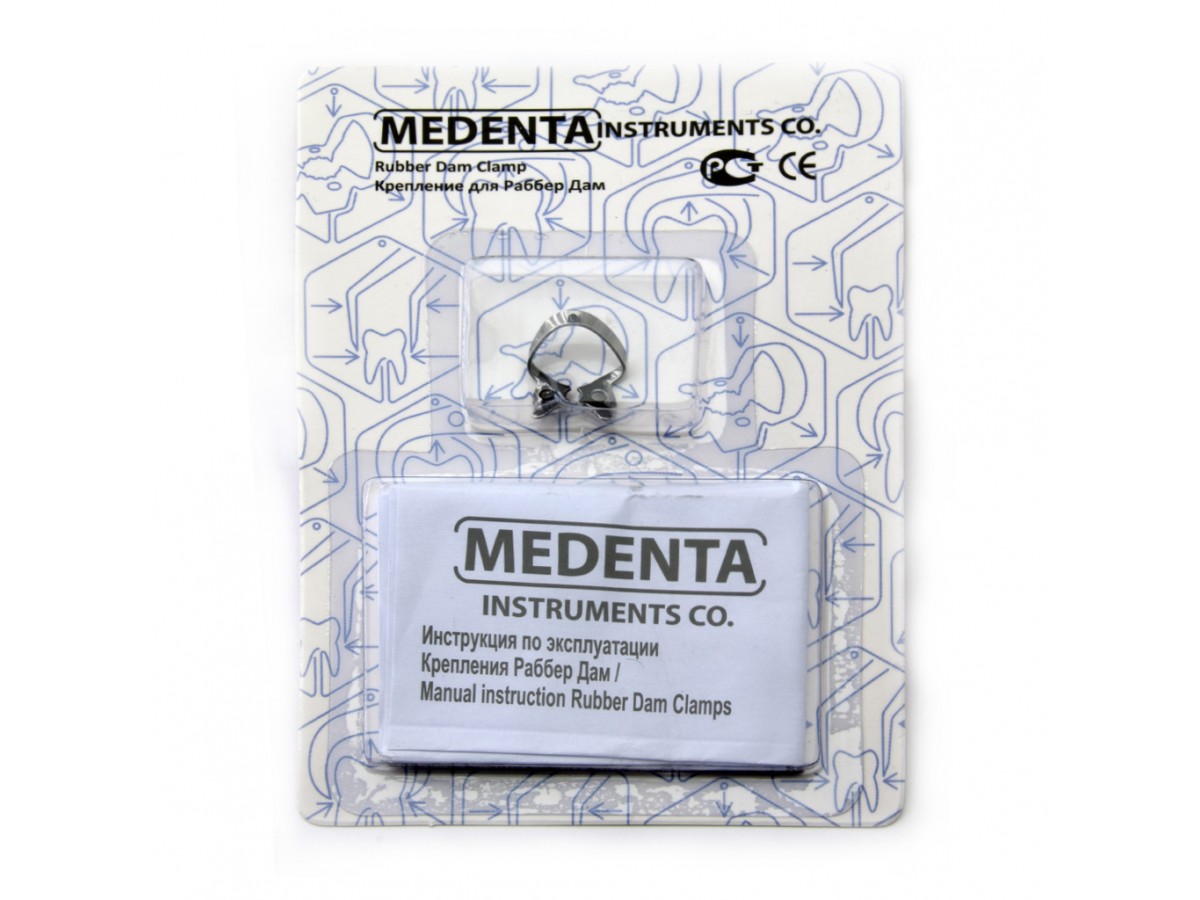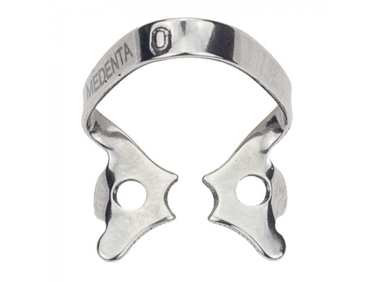 Кламп № 0 для узких в корневой части премоляров, с плоскими щечками. Возможно использование на фронтальных зубах. Производитель: Medenta, Пакистан.