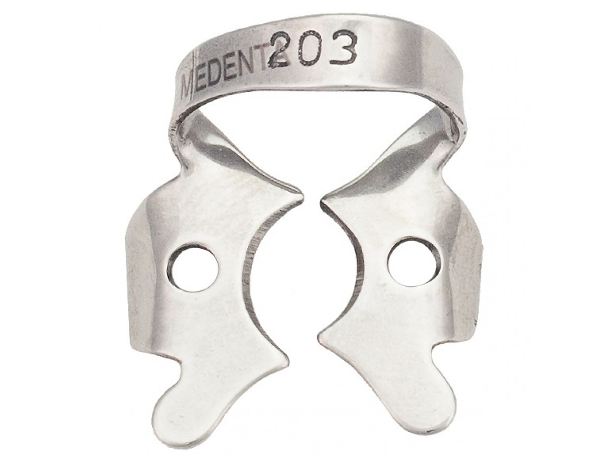 Кламп № 203 для нижних правых моляров и первых премоляров с плоскими щечками, парные с № 204. Производитель: Medenta, Пакистан.