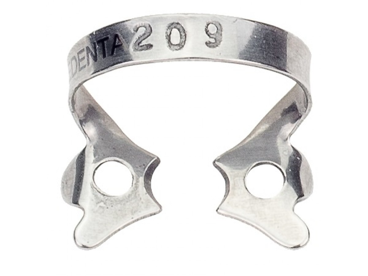 Кламп № 209 для нижних премоляров с плоскими щечками, аналогичные №208, но немного меньше и с усиленной дугой. Производитель: Medenta, Пакистан.