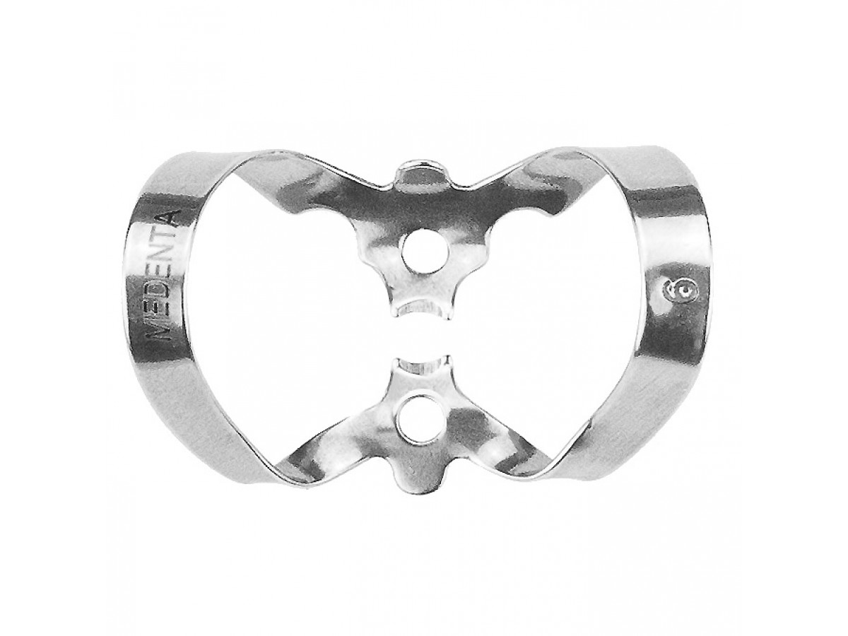Кламп № 9 бабочка для резцов и клыков при вестибулярном кариозном поражении. Симметричные щечки с легким смещением. Производитель: Medenta, Пакистан.
