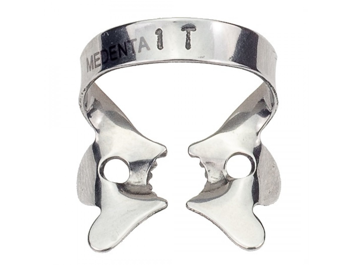 Кламп № 1Т для корней клыков и премоляров с фестончатыми ретенционными зубцами на щечках. Производитель: Medenta, Пакистан.