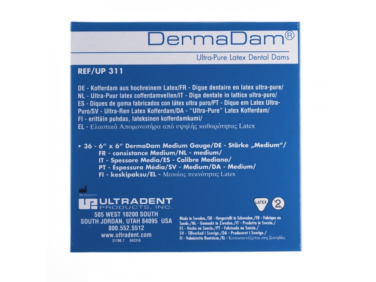 Коффердам DermaDam Medium из чистого латекса без содержания талька. Производитель: Ultradent, США.
