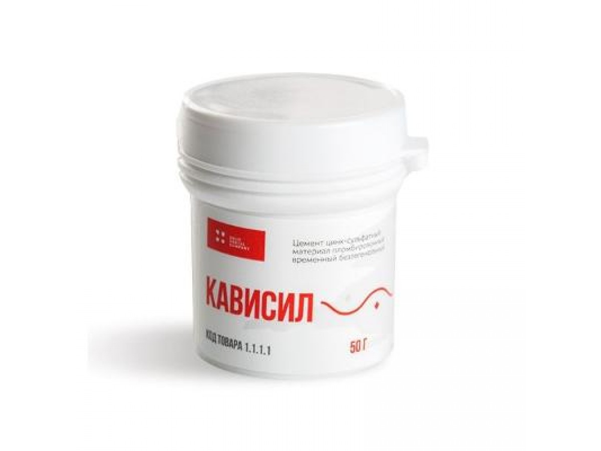 Кависил - это безэвгенольный, пластичный, цинк-сульфатный цемент, предназначенный для изоляции лекарственных препаратов в кариозной полости и временного пломбирования зубов. Отвердение в полости зуба происходит под действием влаги слюны, при этом «Кависил» слегка расширяется, обеспечивая герметичное пломбирование. Производитель: Целит, РФ.