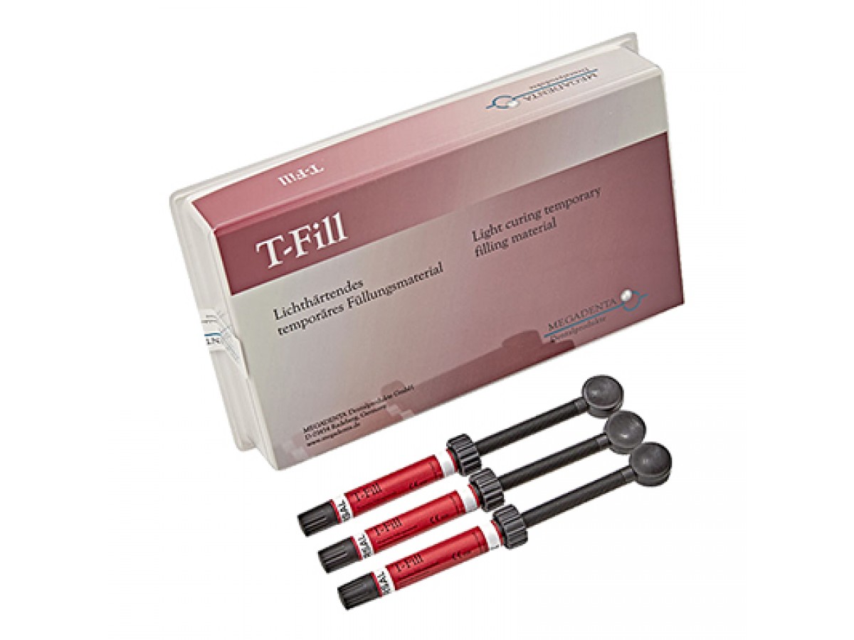T-Fill - это светоотверждаемый, однокомпонентный материал для временного пломбирования. T-Fill содержит флюорид, который предотвращает появление кариеса. Производитель: Megadenta, Германия.