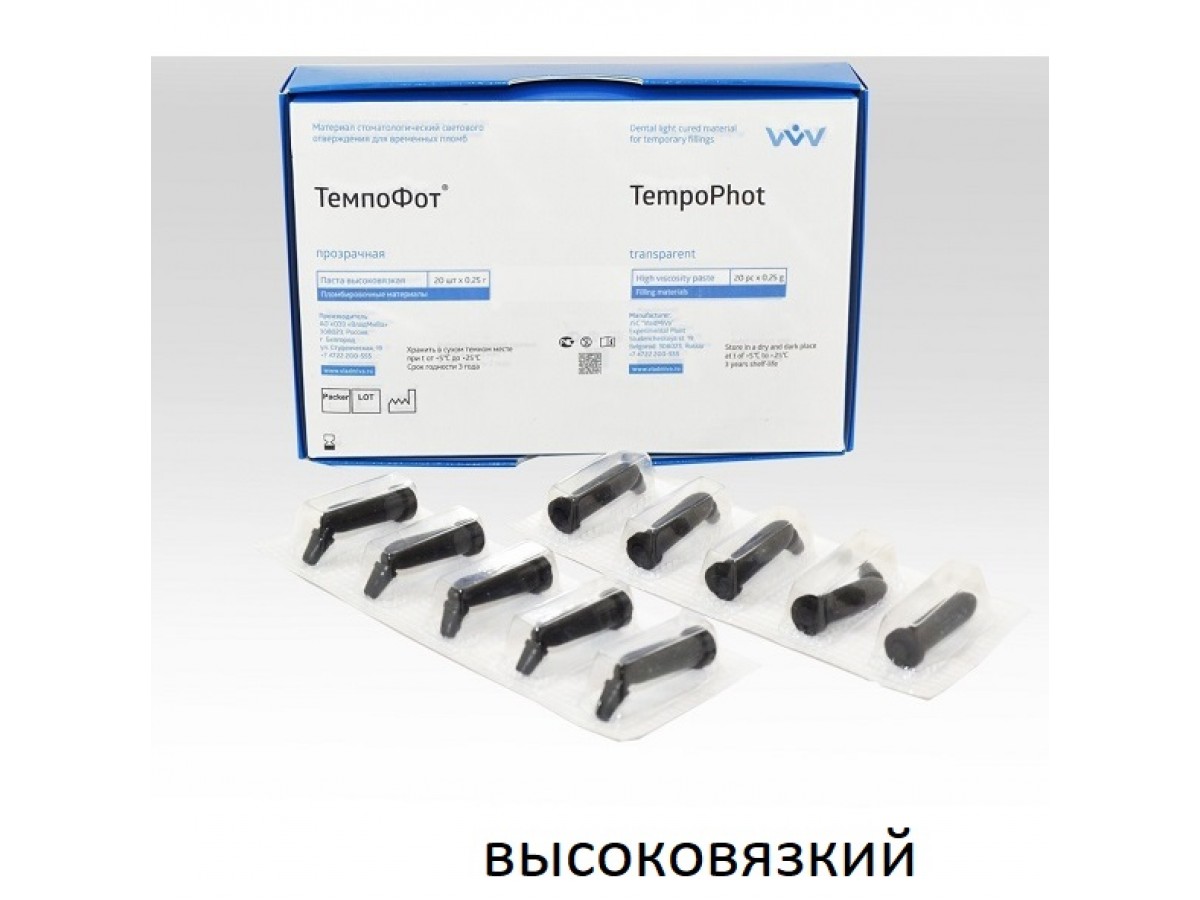 Темпофот высоковязкий - светоотверждаемый композитный материал для временного пломбирования. Производитель: ВладМиВа, Россия.