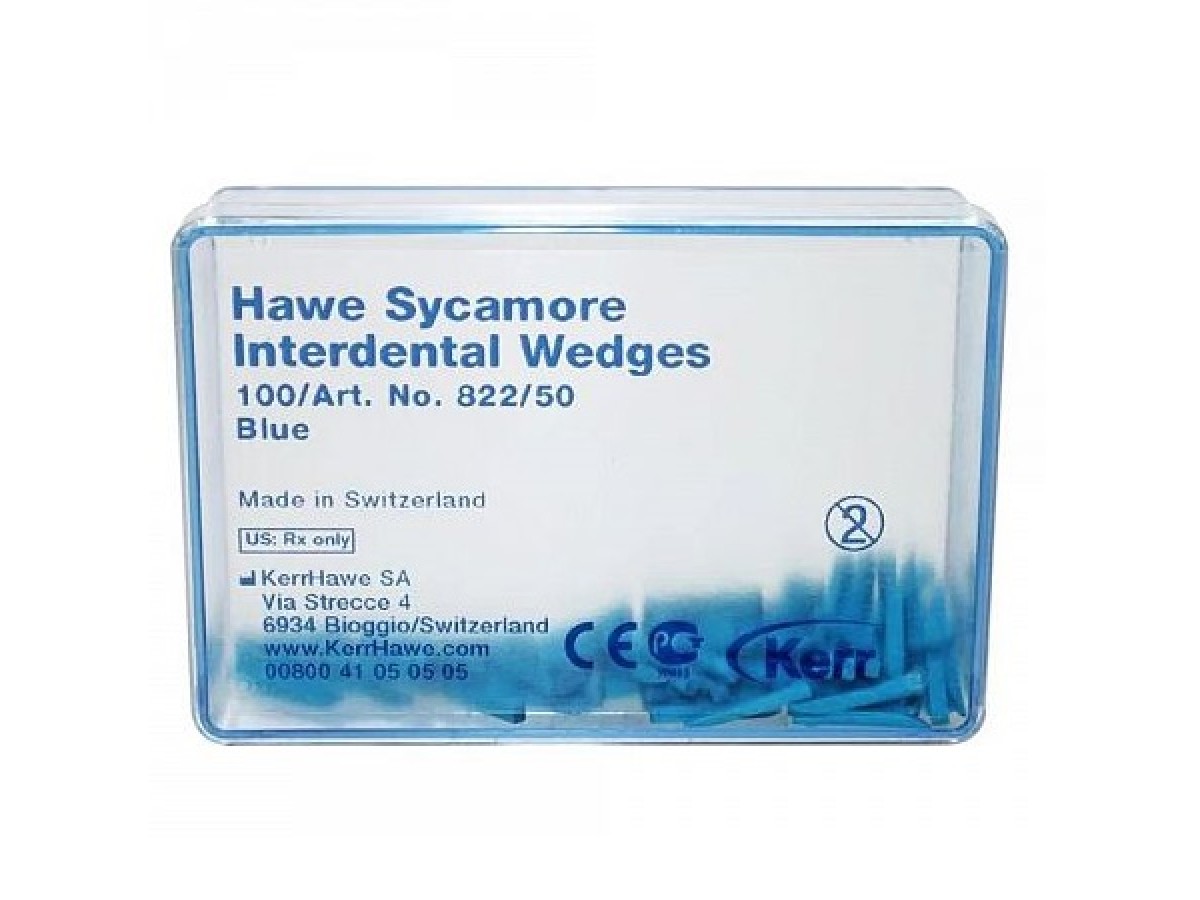 Hawe Sycamore Interdental Wedges – деревянные межзубные клинья из платана различных форм с цветной маркировкой. Производитель: Kerr, США.