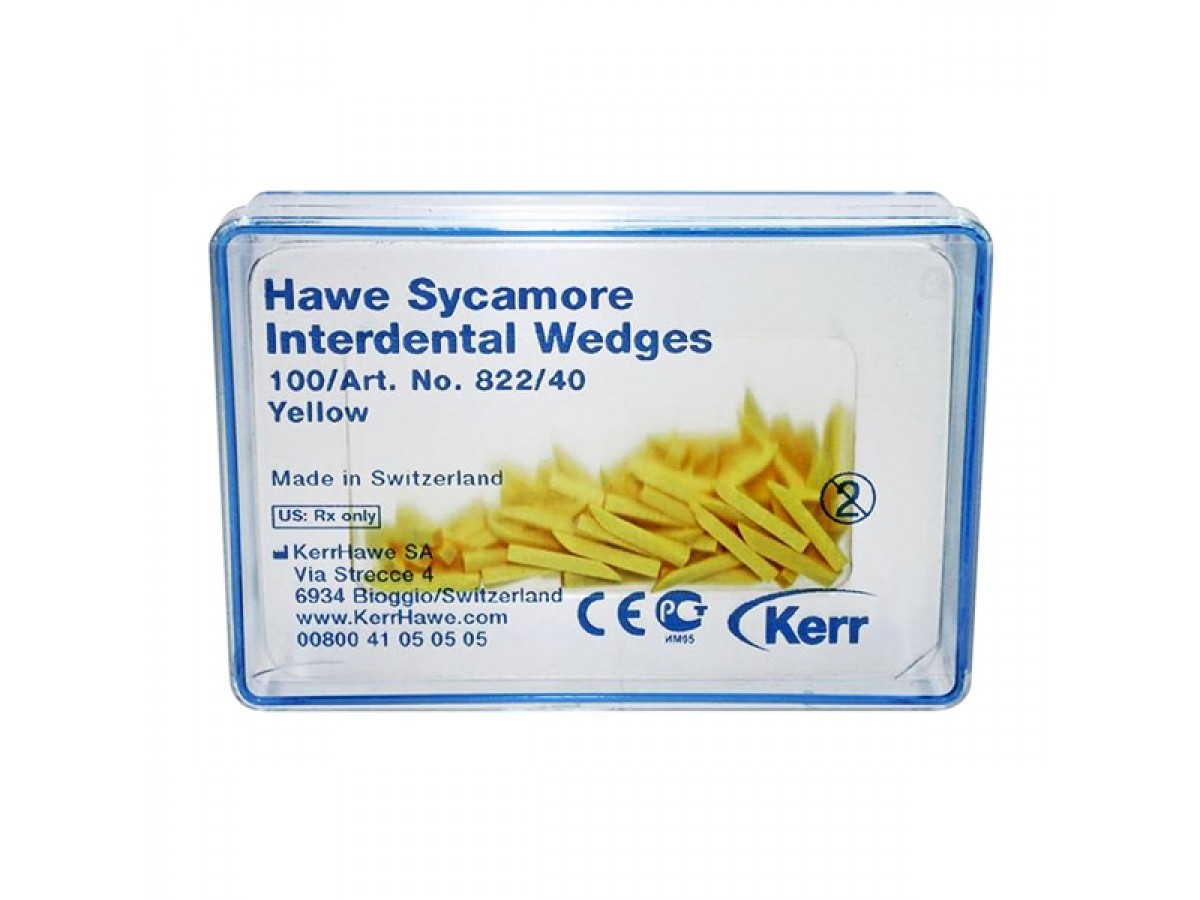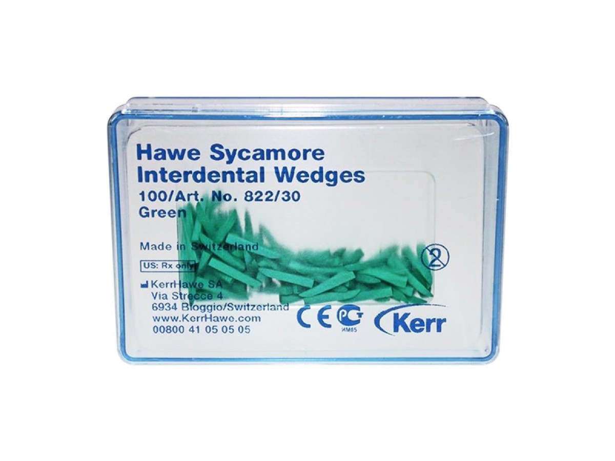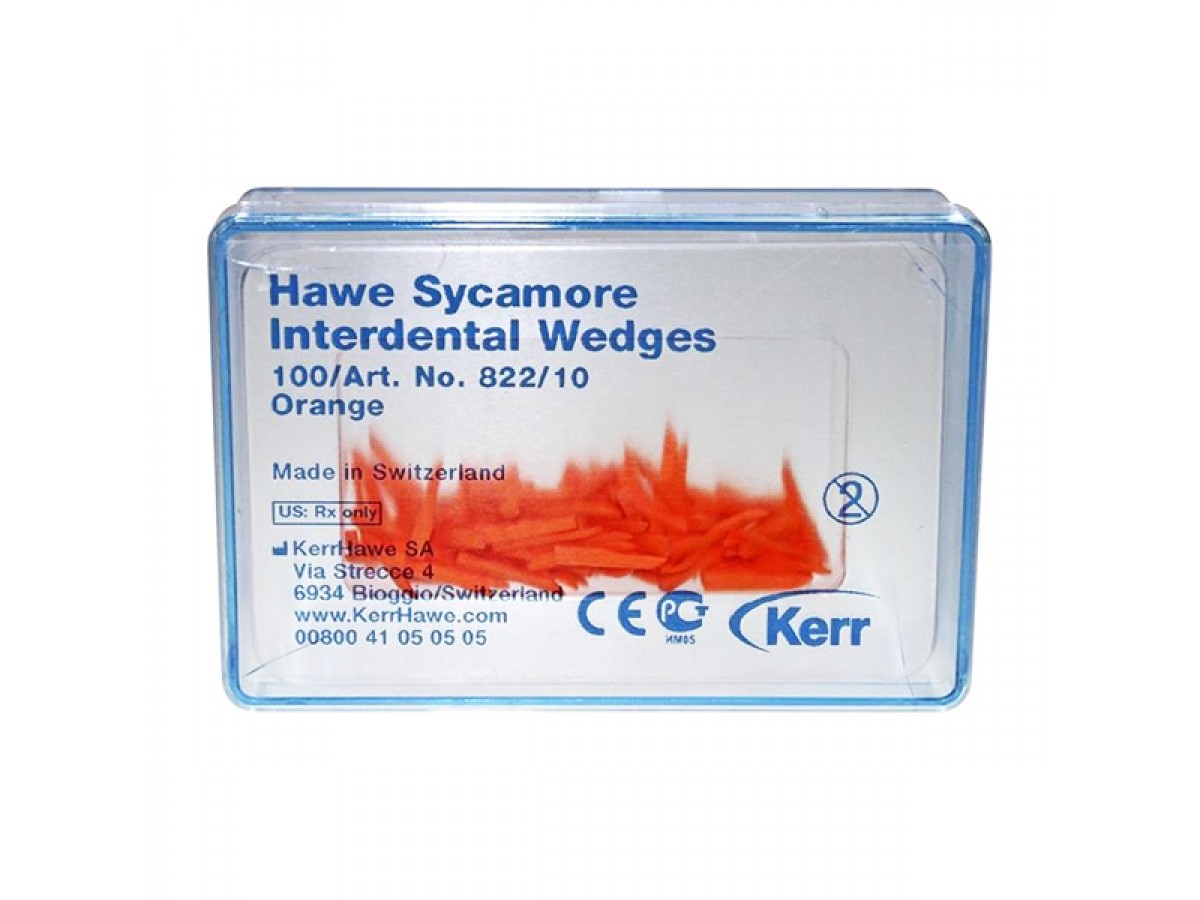 Hawe Sycamore Interdental Wedges – деревянные межзубные клинья из платана различных форм с цветной маркировкой. Производитель: Kerr, США.