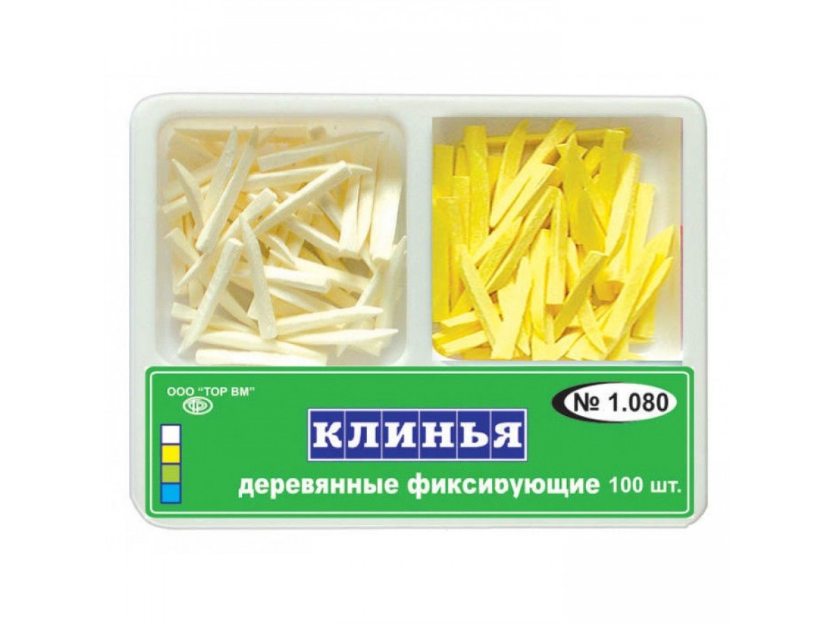 Фиксирующие деревянные клинья ТОР ВМ № 1.080м, изготавливаются из клена, имеют анатомическую форму. В наборе 100 шт. двух типов. Производитель: ТОР ВМ, Россия.