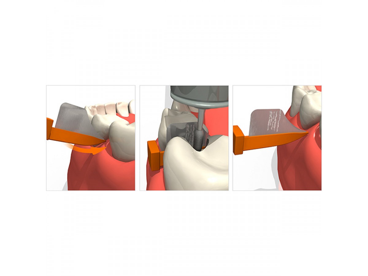 - Прочно фиксируются в межзубном промежутке и остаются на месте в течение всего процесса препарирования.