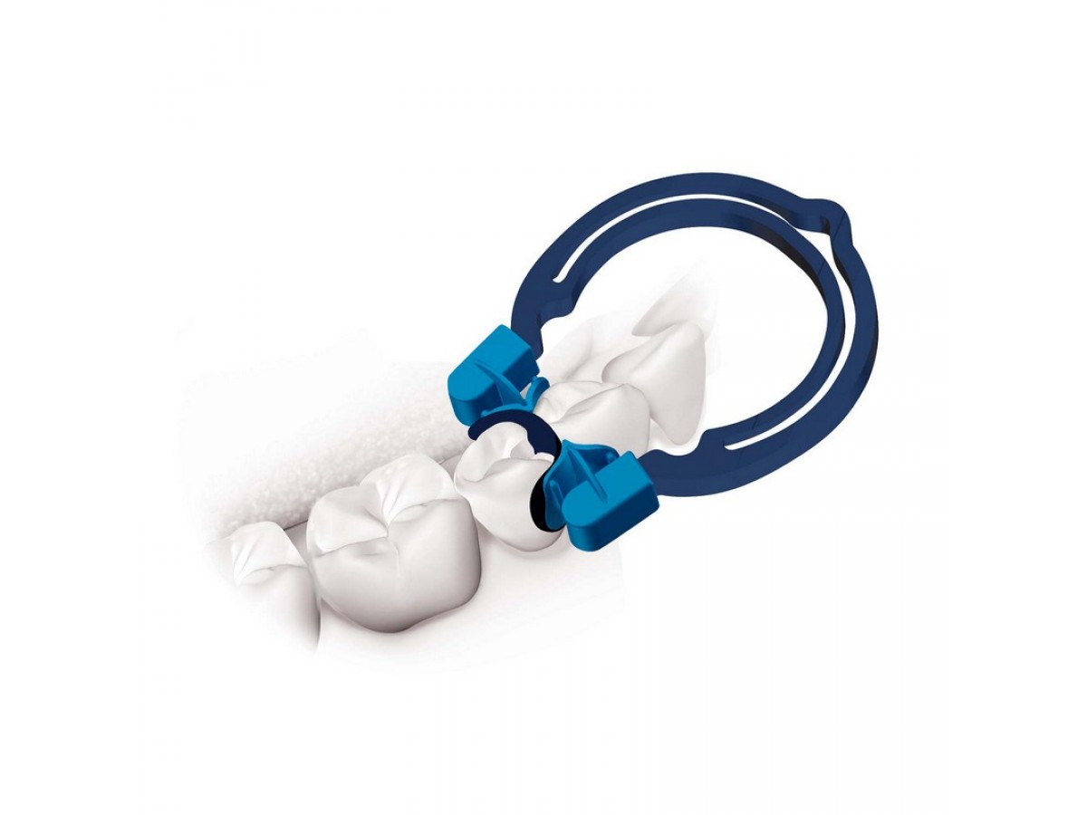 Благодаря анатомичной форме фиксаторов и тому, что под конкретный клинический случай - можно использовать фиксаторы разных размеров на одном кольце, этот инструмент абсолютно незаменим при решении сложных задач на премолярах и молярах. Кольцо отлично работает на зубах с различной высотой коронковой части, нестандартной морфологией и различными по глубине и высоте дефектами. Не требует дополнительного инструмент для установки.