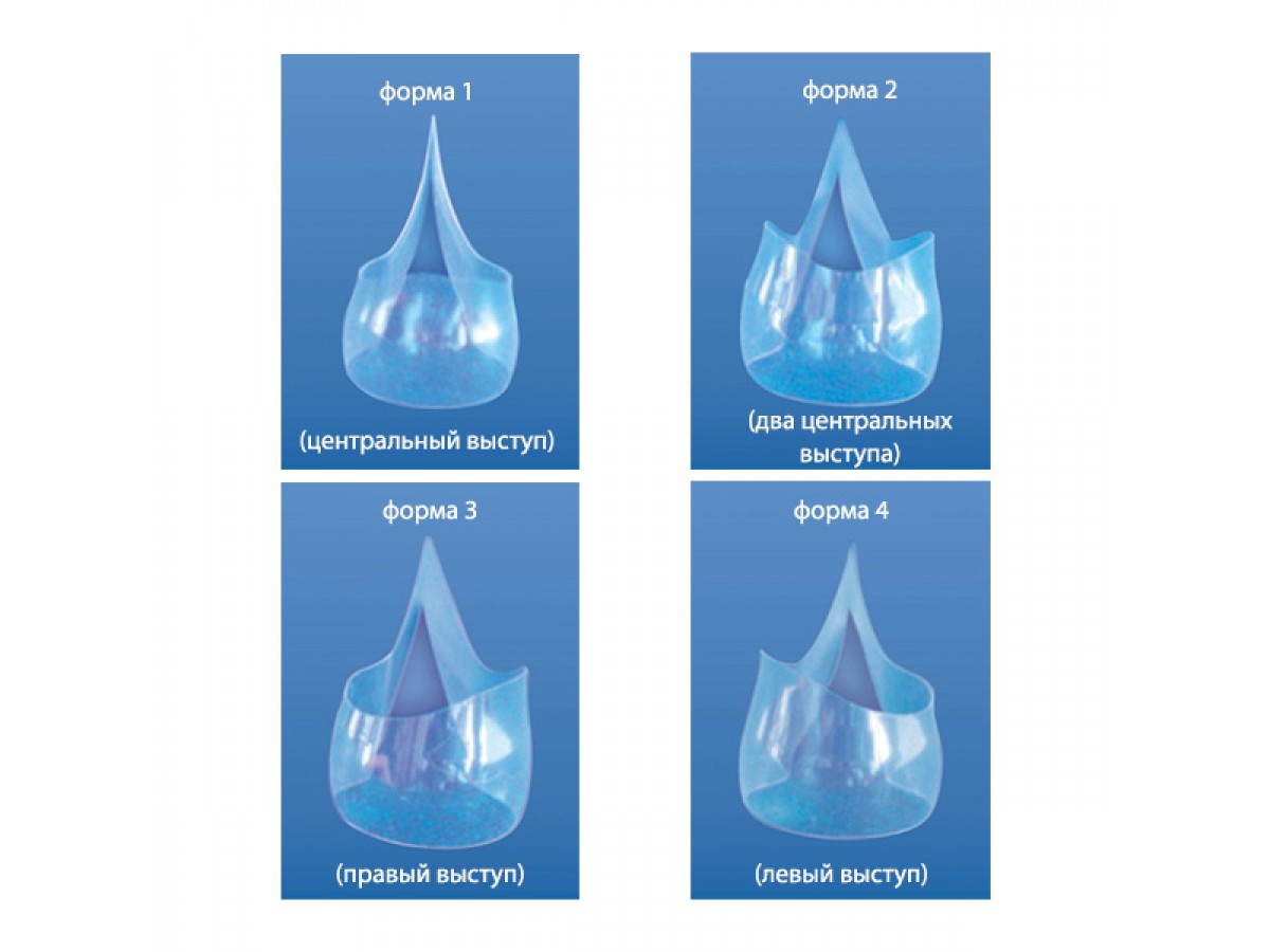 - Наличие 4-х форм матриц для премоляров и 4-х форм матриц для моляров позволяет практикующему врачу выбрать оптимальный тип матрицы для каждого конкретного клинического случая.