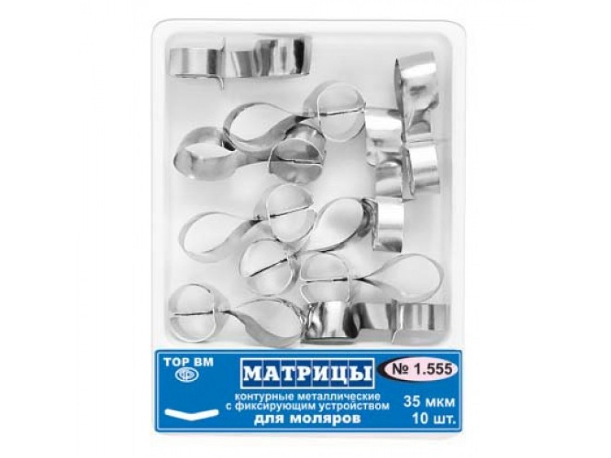 Матрицы металлические контурные 1.555 с фиксирующим устройством для моляров. Производитель: ТОР ВМ, Россия.