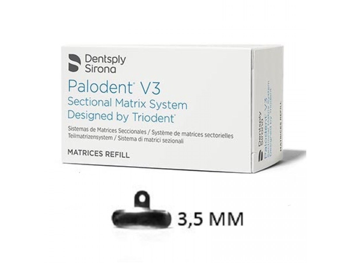 - Матрицы стоматологические Palodent v3 в отдельных упаковках: 3,5 мм, 50 штук.