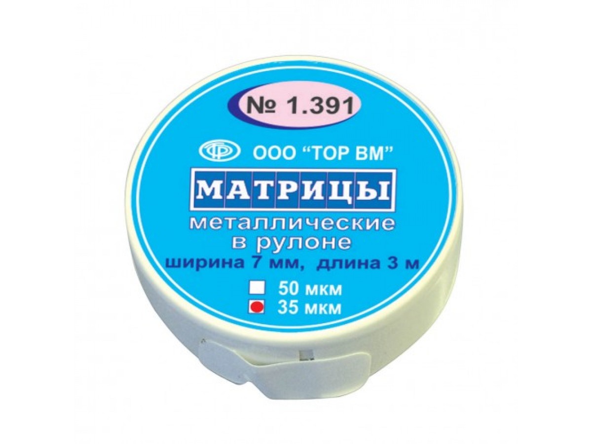 Матрицы металлические в рулоне TOP BM 1.392 изготовлены из специальной коррозионностойкой стали (экологически чистого материала и соответствуюет требованиям международных ГОСТов). Производитель: TOP BM, Россия.