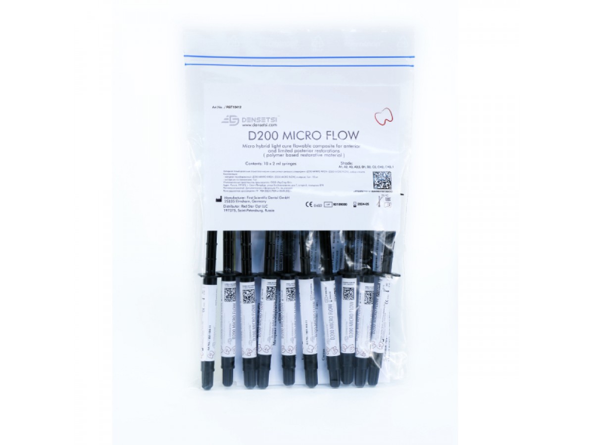 D200 Micro Flow — текучий микрогибридный светоотверждаемый рентгеноконтрастный композит для реставраций фронтальных и некоторых реставраций жевательных зубов. Производитель: First Scientific Dental Materials GmbH, Германия.