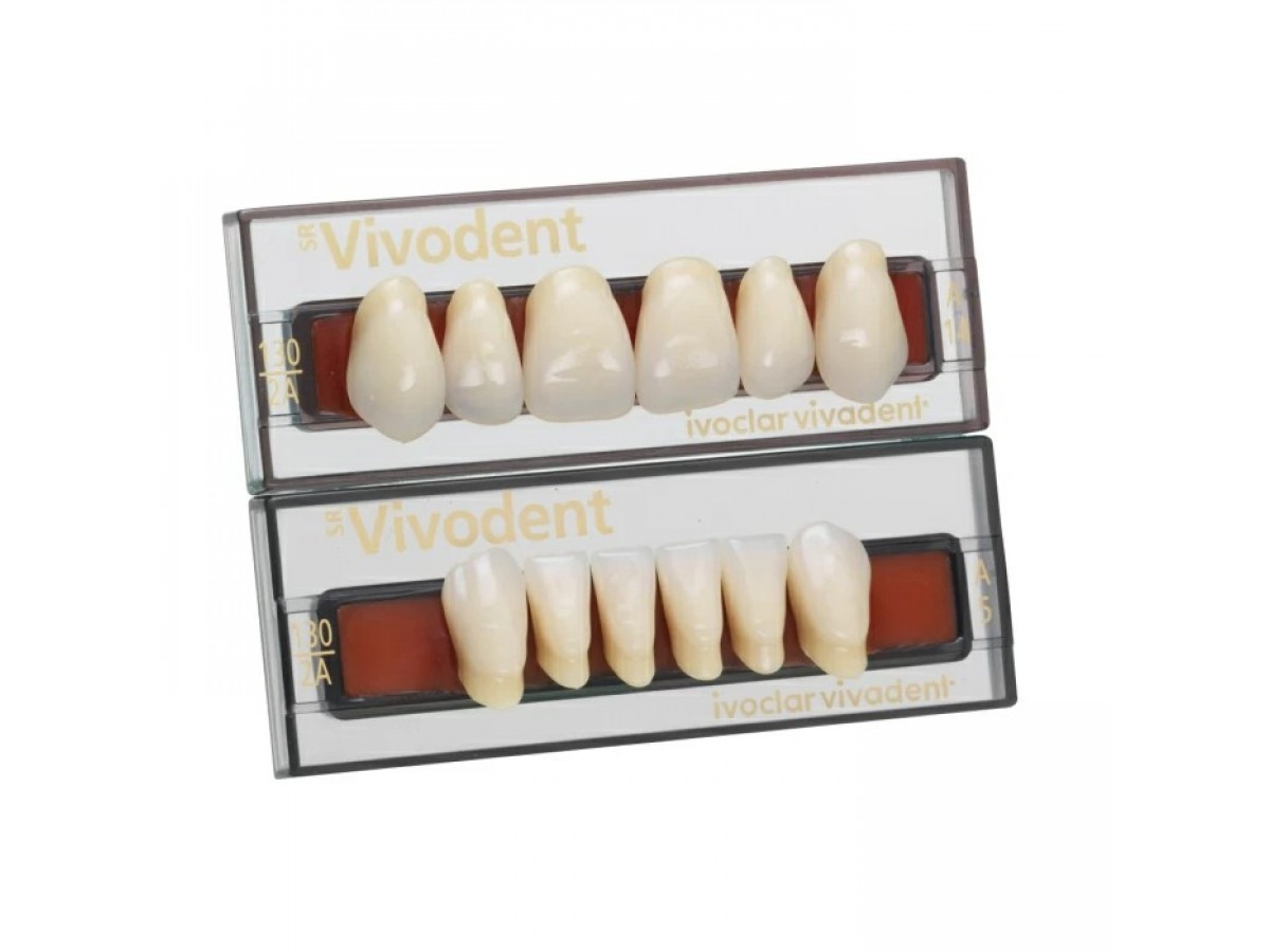 Естественный вид и отличные химические свойства – это ключевые характеристики линии передних зубов SR Vivodent. Широкий выбор 25 верхних и 10 нижних A-форм основан на хорошо зарекомендовавших себя анатомических формах передних зубов Ivoclar Vivadent. Производитель: Ivoclar Vivadent, Филиппины.