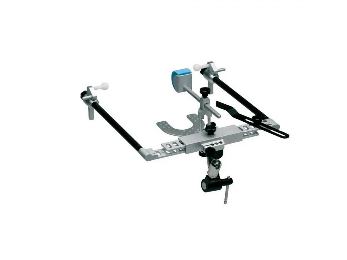 За счет регулируемых по высоте ушных упоров лицевая дуга подходит для установки моделей относительно координат. Боковые части, изготовленные из углеродного волокна, снижают вес основной дуги, тем самым делая возможным перенос моделей с учетом координат