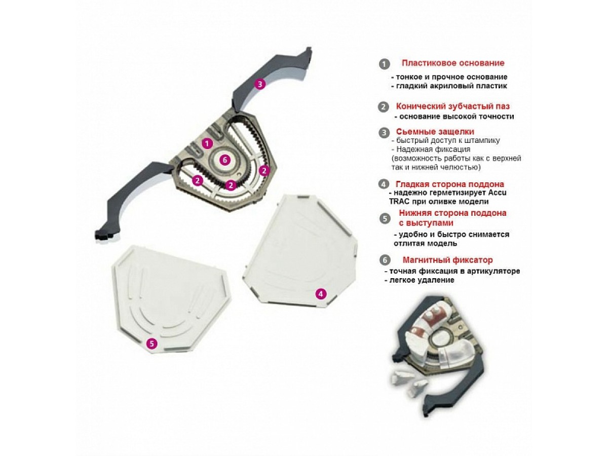 "Accu-Trac" создаёт превосходную базу для качественной работы зубного техника. Всего несколько шагов и разборная модель готова. Просто и быстро!