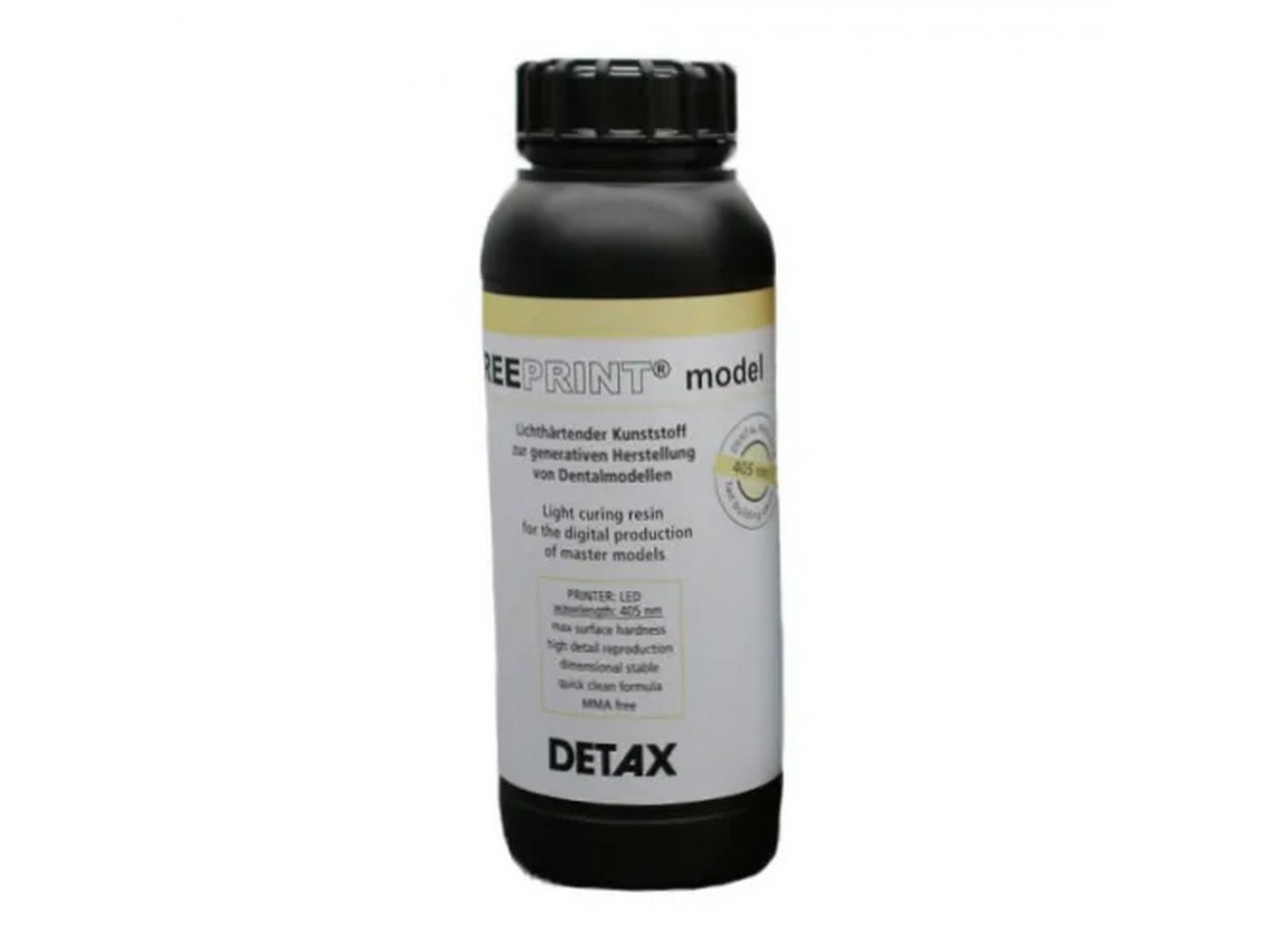 Материал для 3D принтеров DETAX Freeprint model - светоотверждаемый полимер для генеративного изготовления дентальных моделей. Для всех светодиодных/ультрафиолетовых принтеров со спектром световой волны 405 нм. Производитель: Detax, Германия.