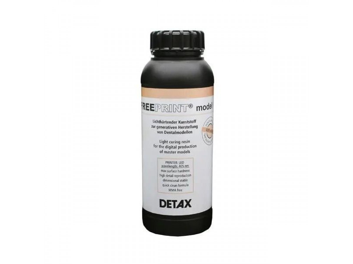 Материал для 3D принтеров DETAX Freeprint model - светоотверждаемый полимер для генеративного изготовления дентальных моделей. Для всех светодиодных/ультрафиолетовых принтеров со спектром световой волны 405 нм. Производитель: Detax, Германия.