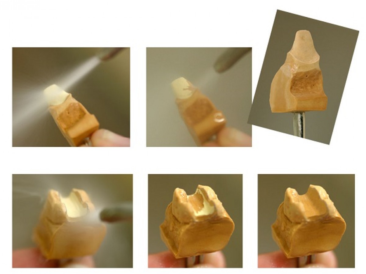 - Техника изготовления коронок из пресс керамики методом раскрашивания значительно упрощается благодаря использованию снимаемых лаков;