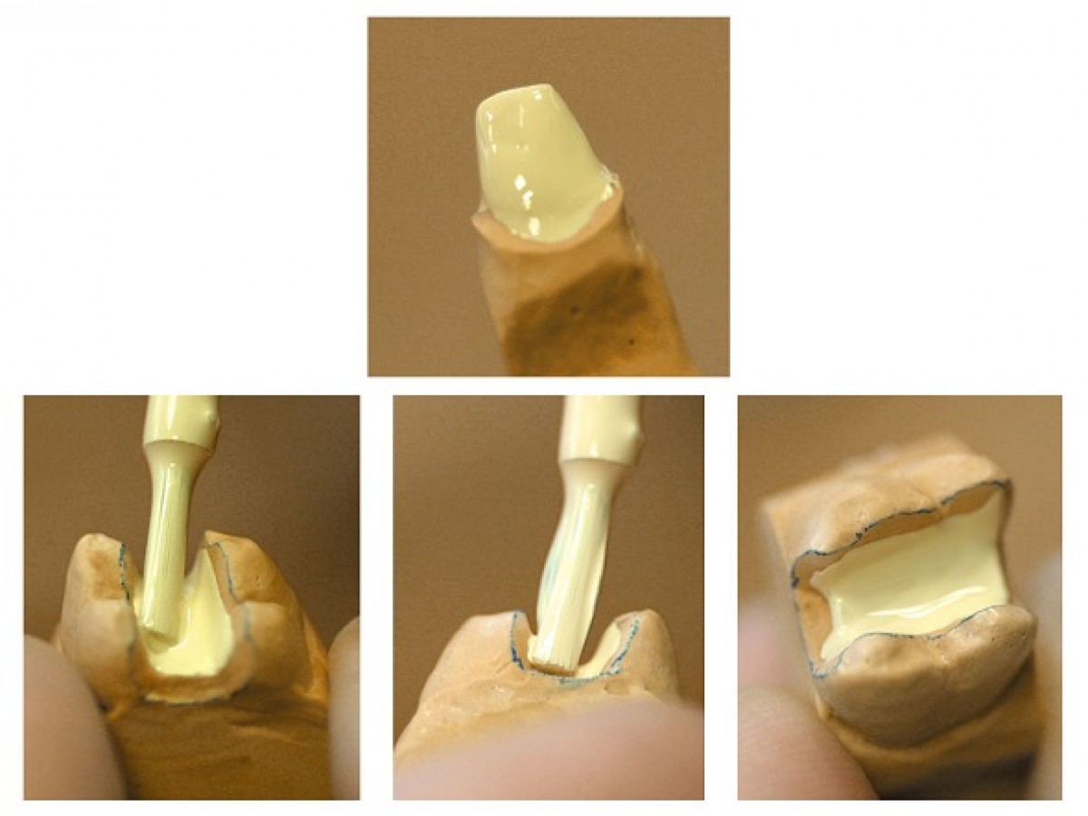 - Техника изготовления коронок из пресс керамики методом раскрашивания значительно упрощается благодаря использованию снимаемых лаков;