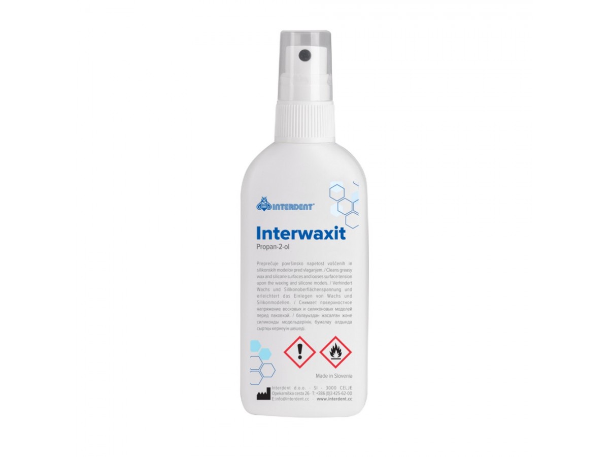 INTERWAXIT - средство для обезжиривания восковой модели, которая ослабляет поверхностное напряжение восковой конструкции.. Производитель: Interdent d.o.o., Словения.