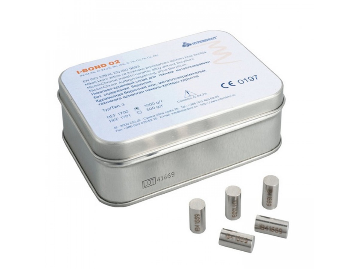 I-Bond 02 - биосовместимый неблагородный сплав для литья на базе никеля для техники металлокерамики. Производитель: Interdent d.o.o., Словения.