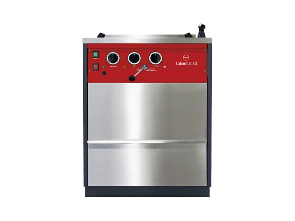 Labormat SD - большой автономный аппарат для автоматической горячей полимеризации базисов зубных протезов традиционным способом и выварки воска, с объемом резервуара равным 50 литров и вмещающий до 12 кювет. Производитель: Dreve, Германия.