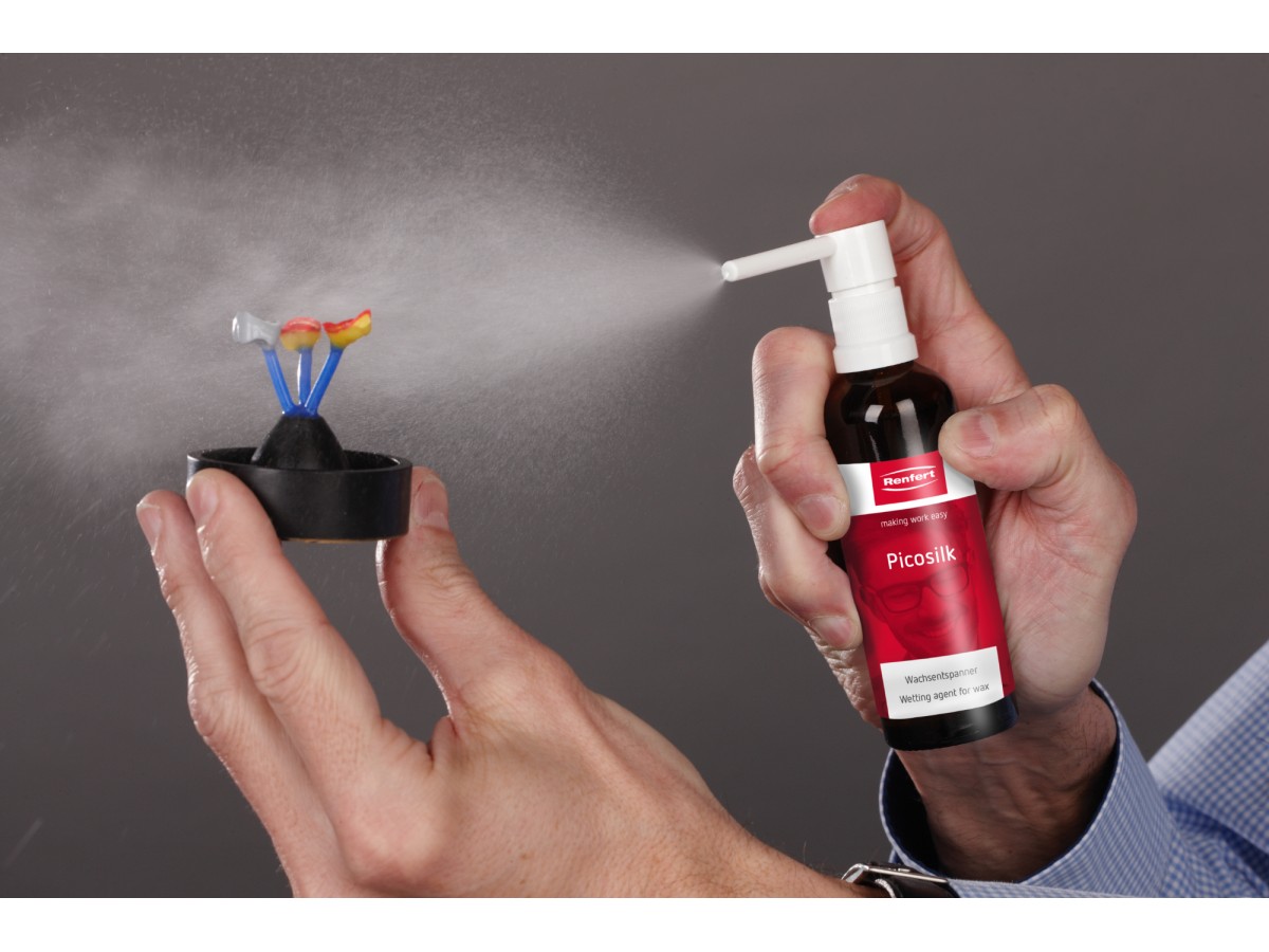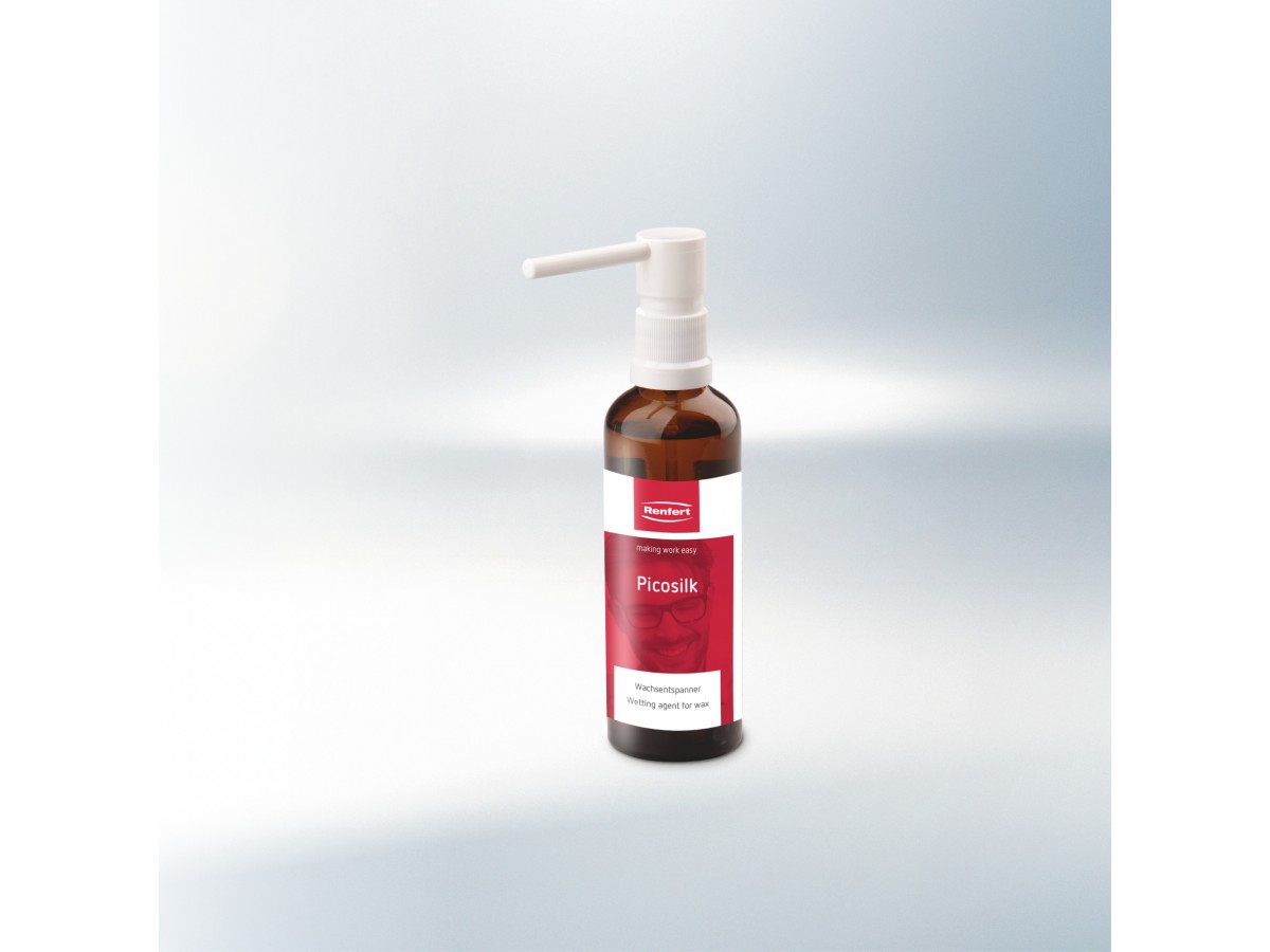 Жидкость Пикосилк (Picosilk) для снятия поверхностного напряжения восковых моделей в технике изготовления коронок, мостов и модельного литья. Производитель: Renfert, Германия.