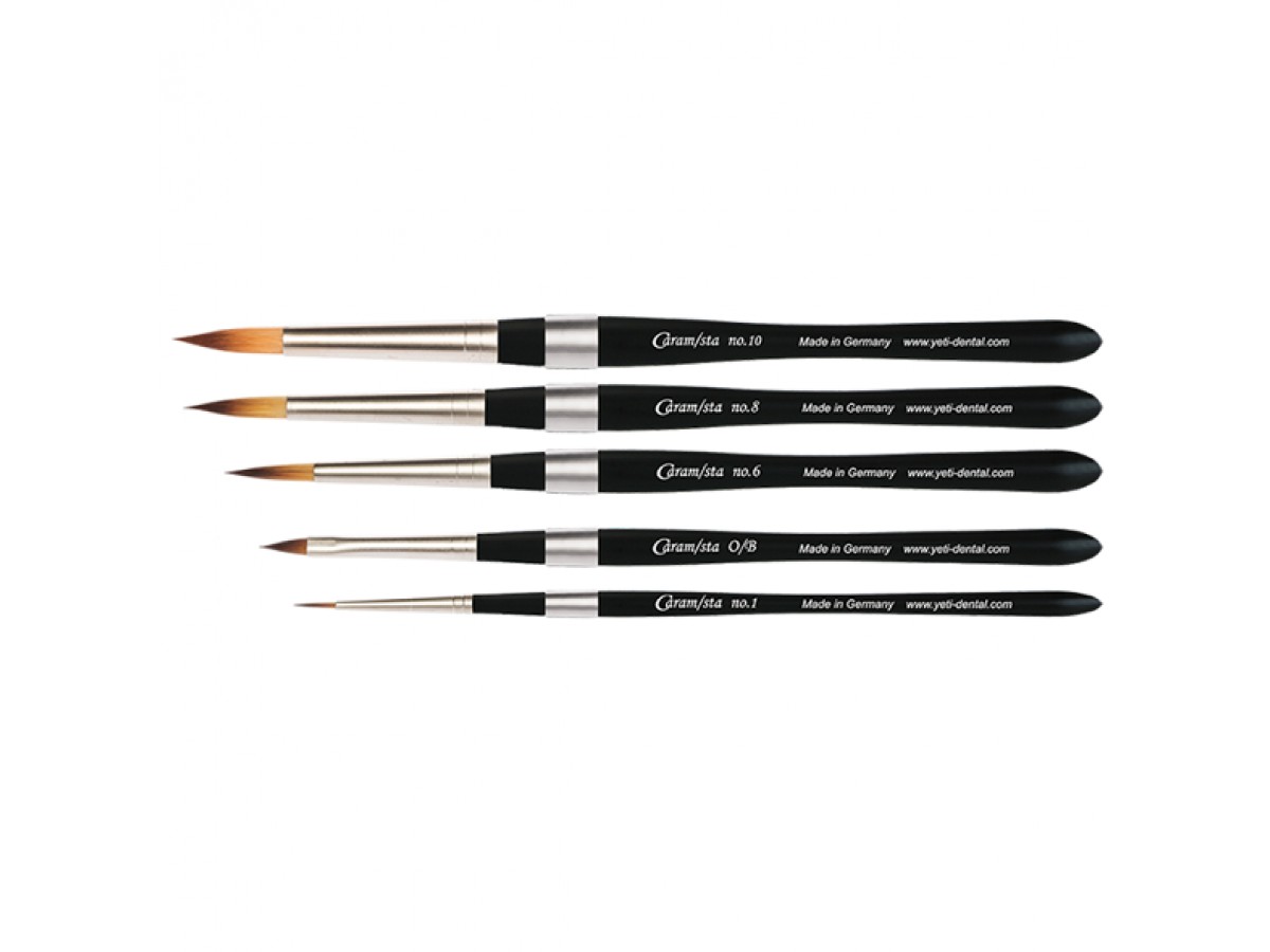 Кисточки для керамики набор Caramista тонкие с деревянной ручкой. Производитель: Yeti Dental, Германия.