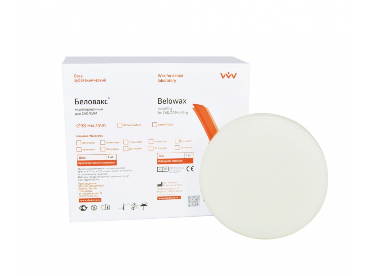 - Воск «Беловакс» для CAD/CAM фрезерования выпускается в виде дисков изготовленных из смеси парафина и полиэтилена.