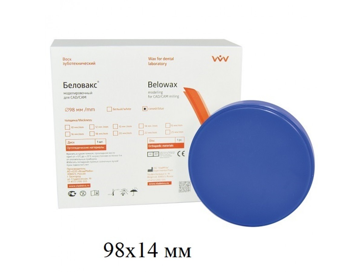 - Беловакс зуботехнический для CAD/CAM фрезерования - диск 98х14 мм.