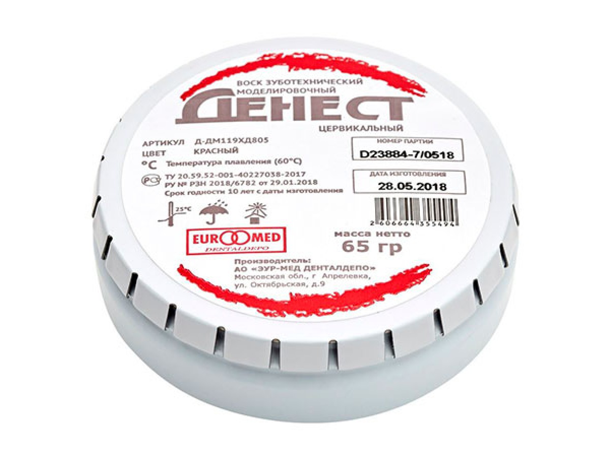 Воск моделировочный Денест цервикальный (красный), 65г. Пришеечный воск, предназначен для формирования цервикального края коронок, вкладок.