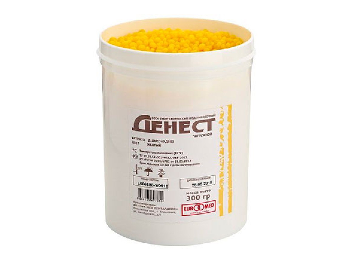 Воск погружной Денест желтый в гранулах, 300г - предназначен для изготовления восковых колпачков с равномерной толщиной стенок методом погружения.